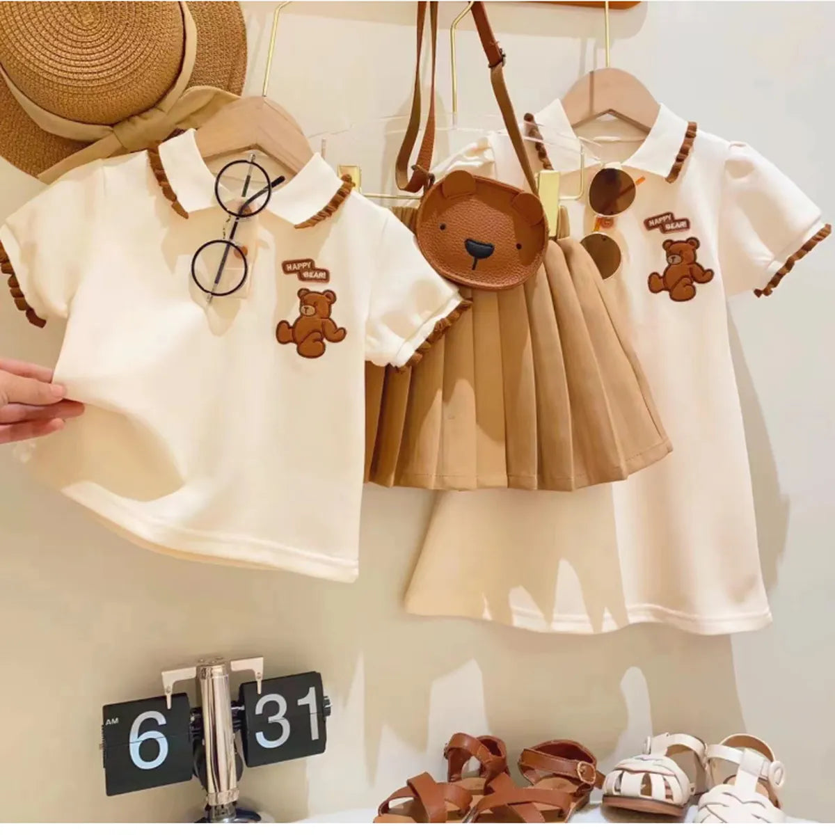 2-Piece Caramel Set for Girls – Polo Top & Pleated Skirt (Ages 2–7)