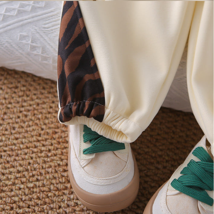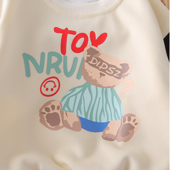 A cozy 2-piece set featuring a bear-print sweatshirt with fun sleeve details and matching pants. Soft fabrics provide comfort for daily wear, while the playful design makes it perfect for active little ones. Available in cream, navy, or beige.