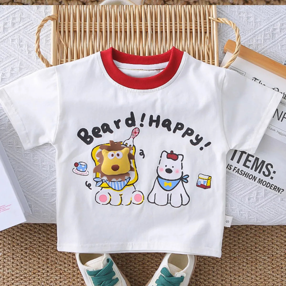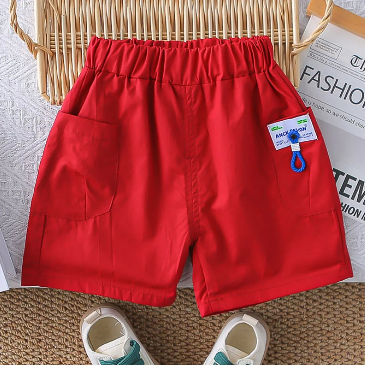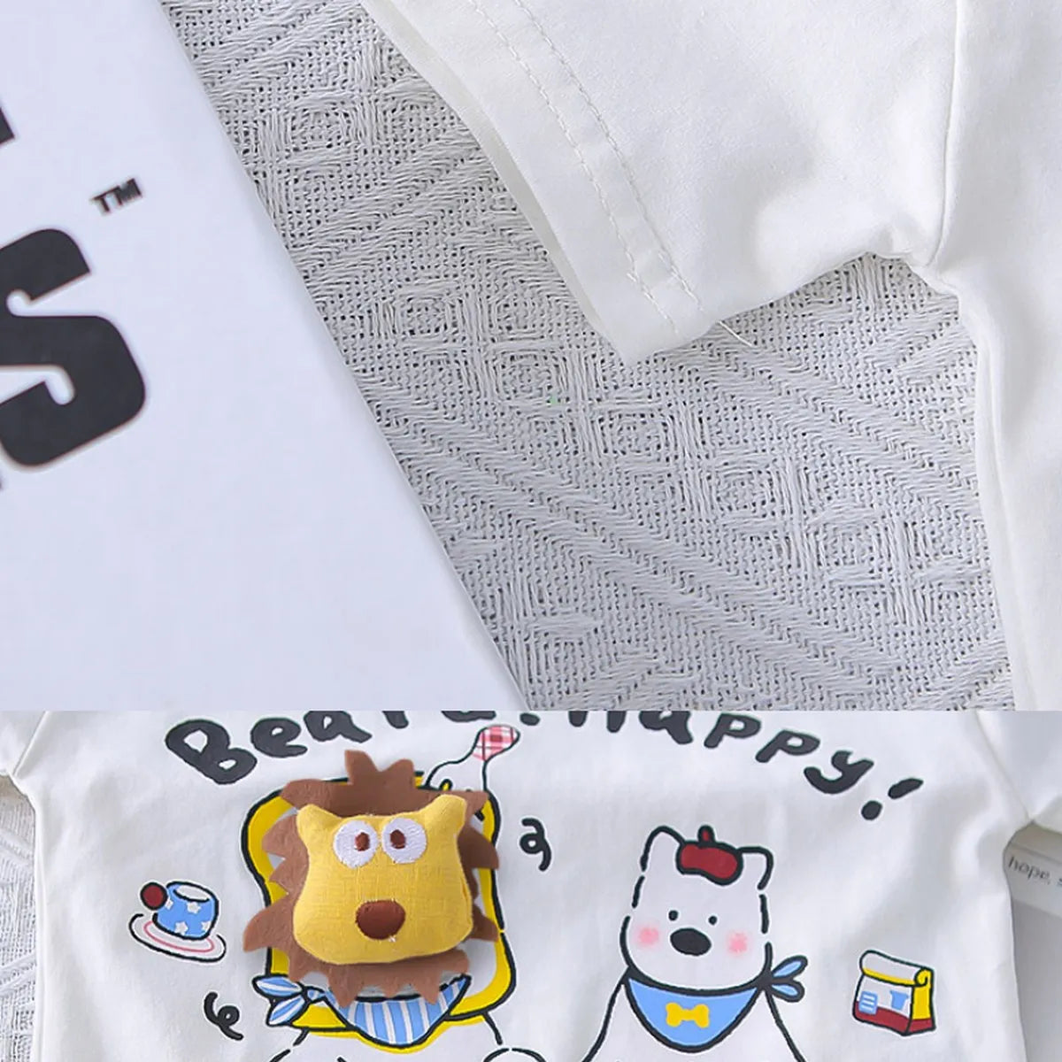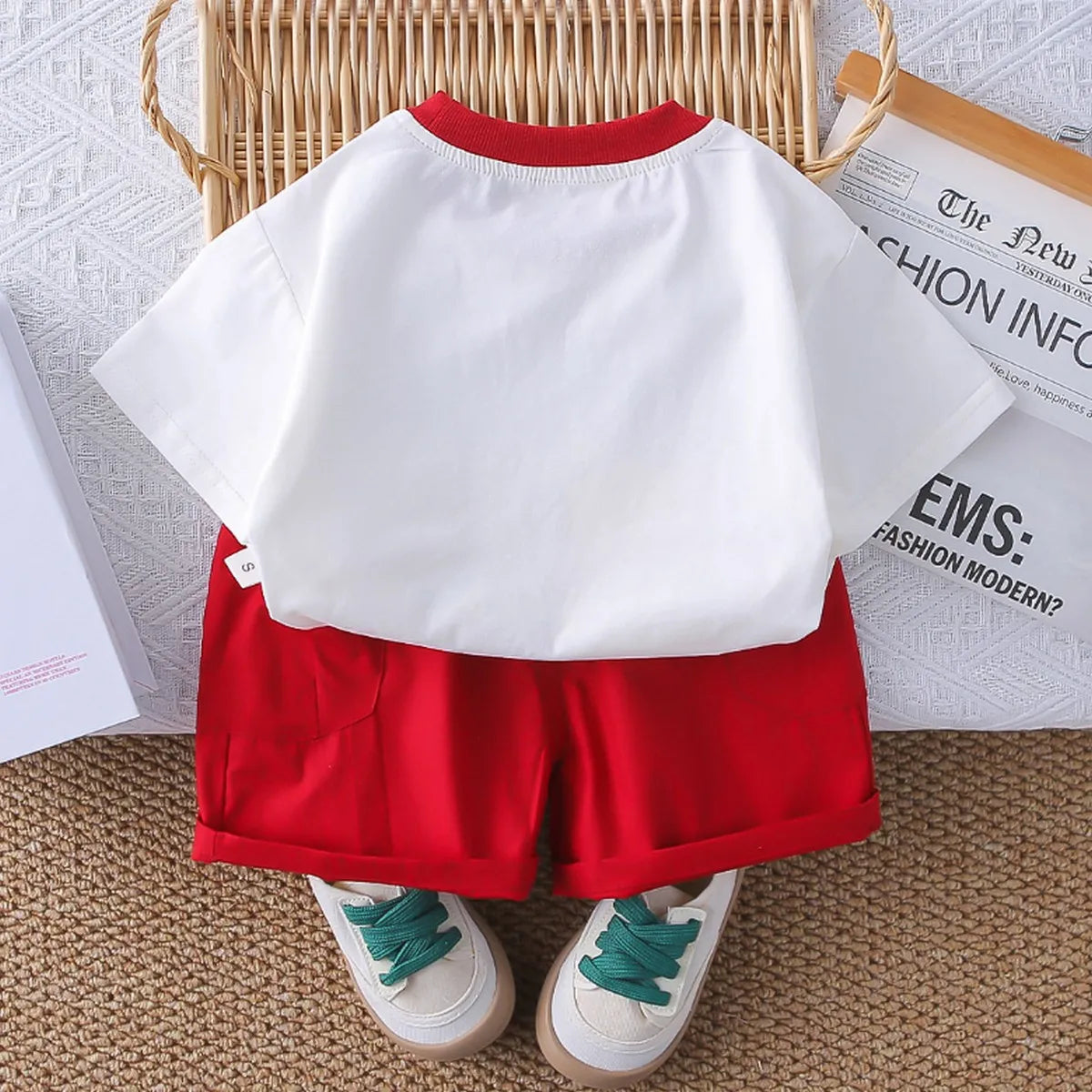 Boys' Happy Bear Graphic Set – Red Shorts Edition