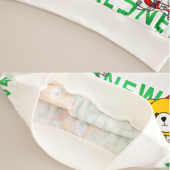 This cute 2-piece set features a bear-print sweatshirt paired with comfy denim jeans. The colorful design makes it fun and playful, while the soft fabric keeps your little one cozy. Easy to wear and perfect for everyday adventures.