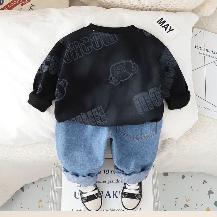 Kids Sweatshirt & Jeans Set – Black, Beige or Grey (1-5 Years)
