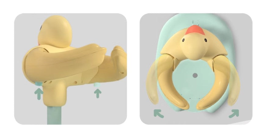 This non-slip baby bath support is ideal for active babies who have trouble staying still during bath time. The stable base and side arm supports keep your child secure, while the faucet feature gently directs water. Parents can wash their child safely with both hands free.