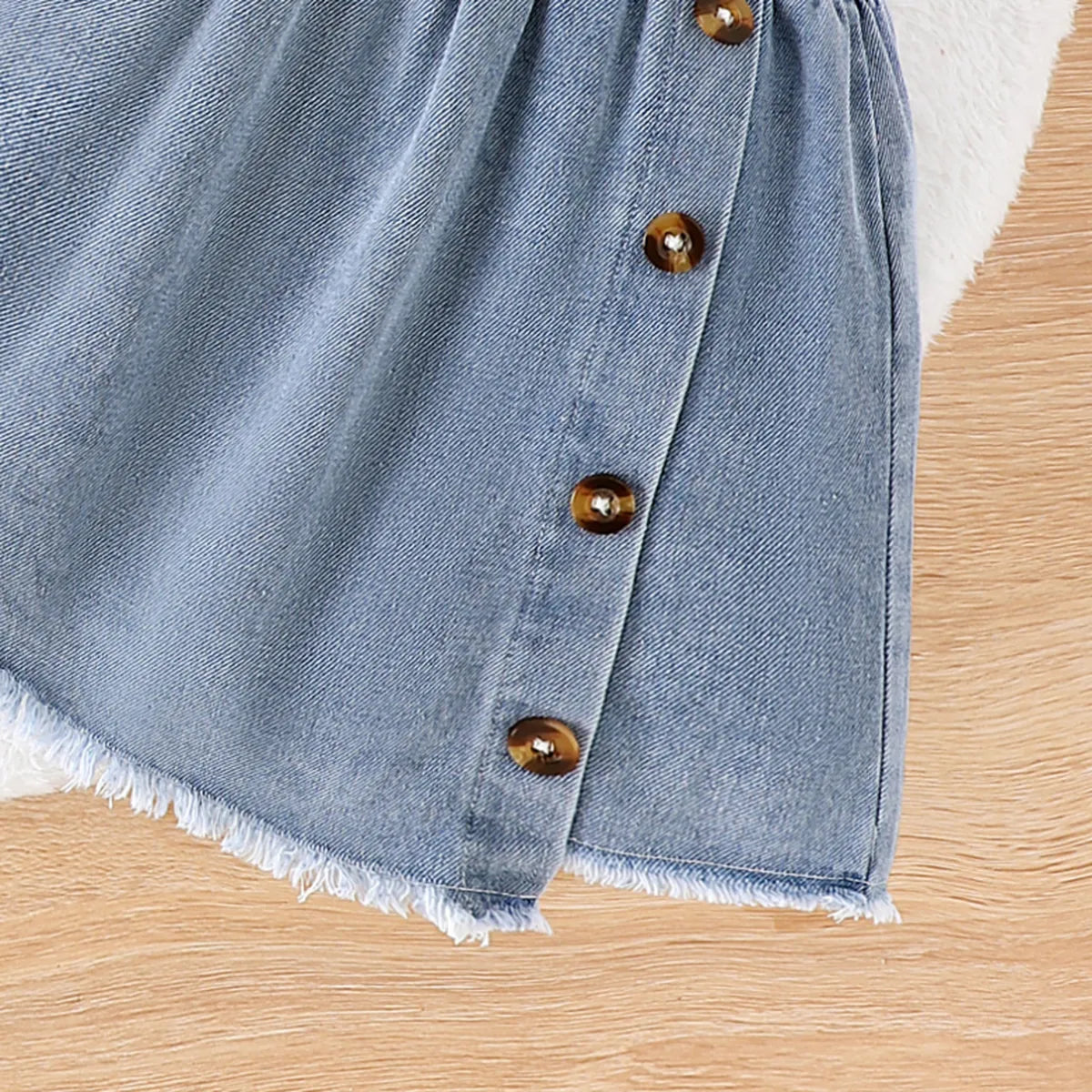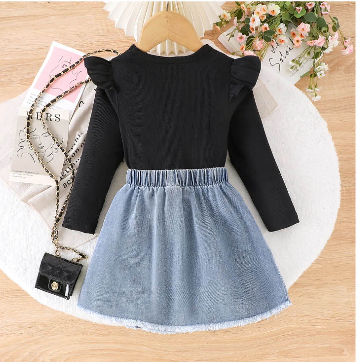 “Sorry or Whatever” Slogan Top & Buttoned Denim Skirt Set (2-7 Years)