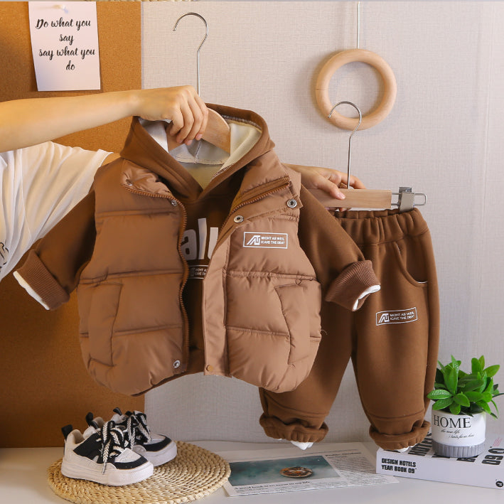 Toddler 3-Piece Hoodie, Pants & Puffer Vest Set – Green, Brown, Cream, White (1-6 Years)